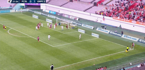 22’ Li Shengmo lách qua khung thành và dùng đầu đánh đầu vào khung thành, bóng đi chệch cột dọc