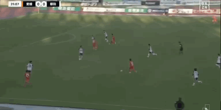36' Cấp độ nào? Cầu thủ Ehime cản bóng trong khu vực ba giây và trực tiếp cản bóng ra ngoài biên