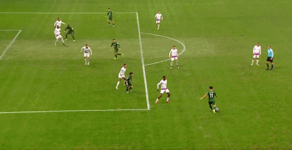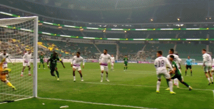 77' Serginho nhận bóng ngay trước khu vực ba giây, sút từ bên ngoài vào lưới hai hậu vệ, bóng đi chệch cột dọc