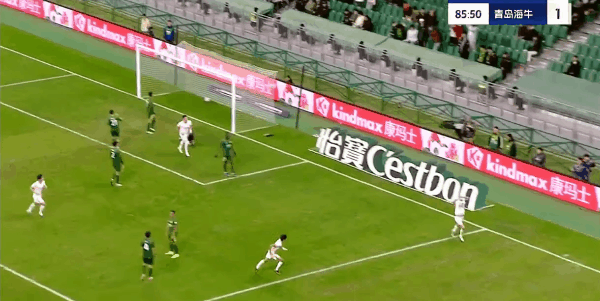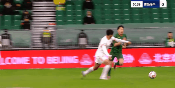 18' Manatee chuyền bóng từ cánh phải tới khung thành, He Yupeng đuổi theo và góp phần cản phá