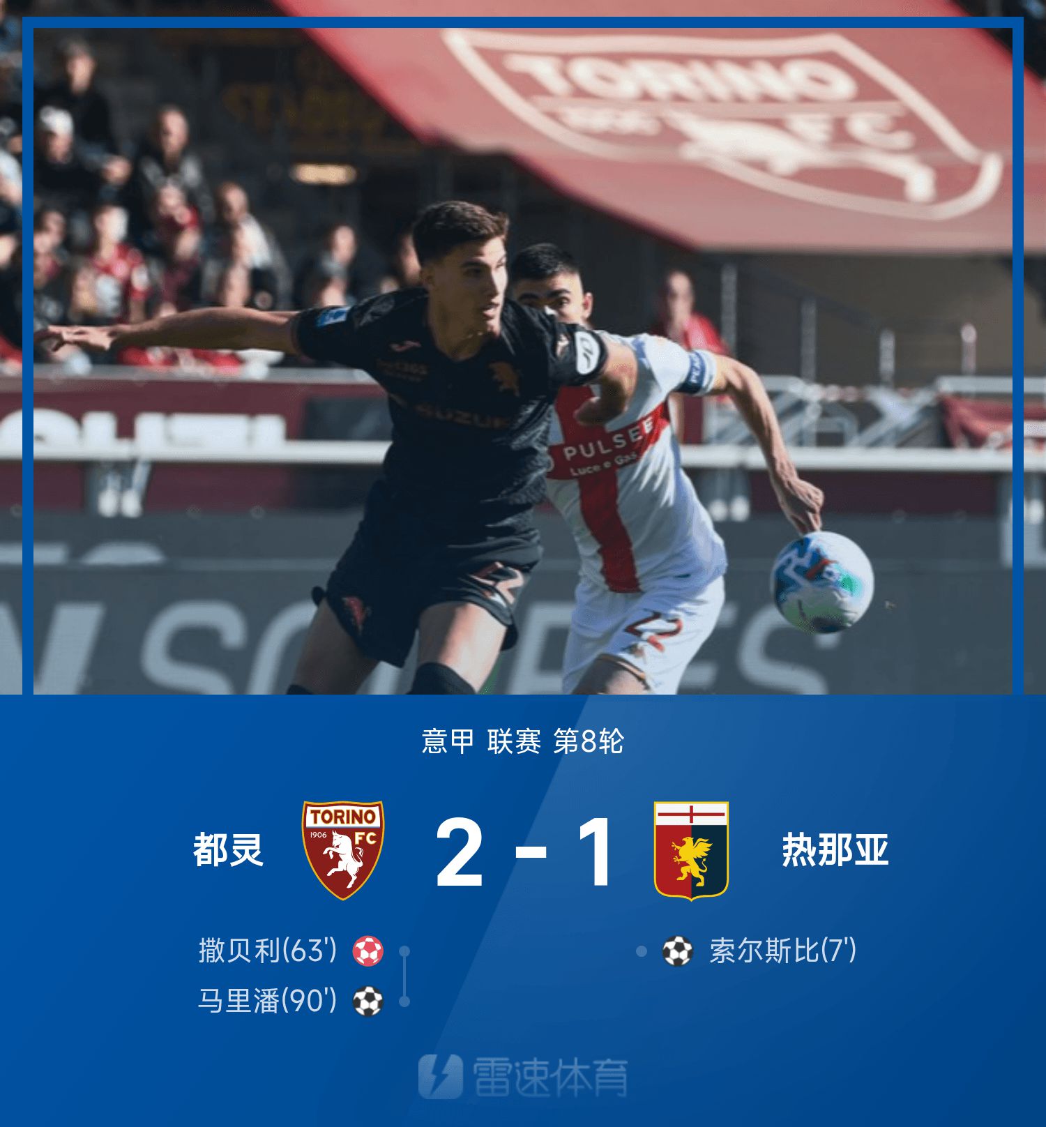 6686 Thể thao ngày 26/10 Ở vòng 8 vòng 25/26 Serie A mùa giải, Turin đã đánh bại Genoa 2-1. Hiệp một, Solsby thành công với pha lập công chớp nhoáng nhưng tình thế bất ngờ thay đổi ở hiệp hai. Sabelli đá phản lưới nhà giúp Turin quân bình tỷ số. Vào phút cuối, trung vệ Maripan thực hiện cú dứt điểm cuối cùng.