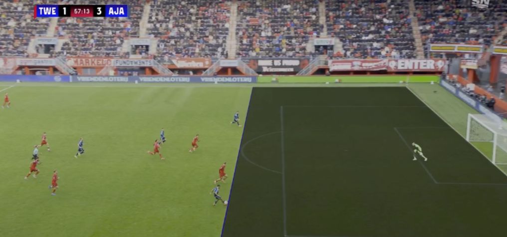 18' Verhorst quay người và rê bóng trong khu vực ba giây và ghi bàn thắng đầu tiên của trận đấu cho Ajax