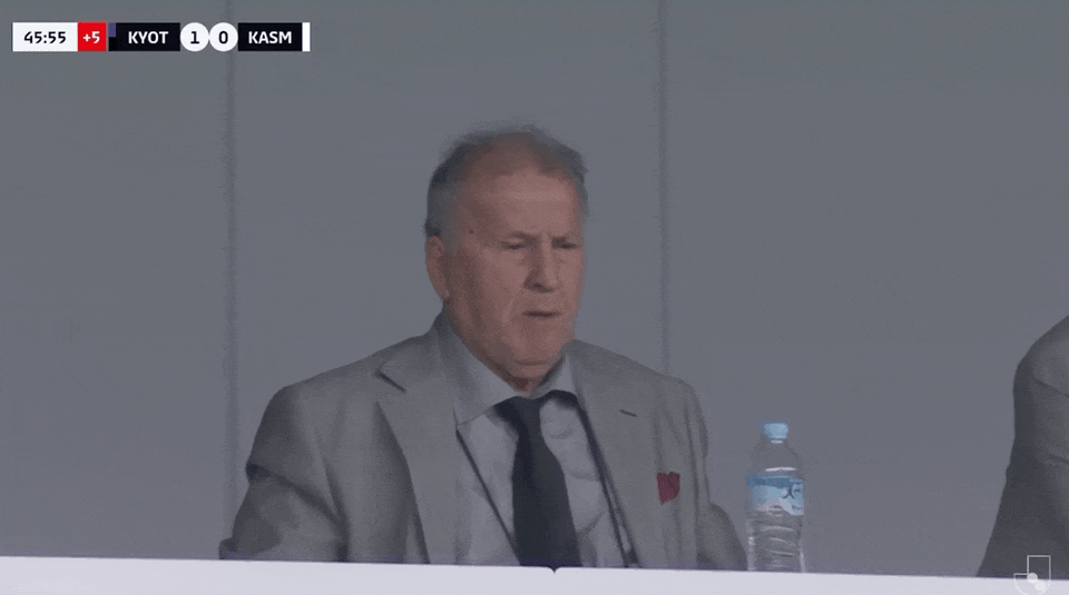 45+2' Kashima tạm dẫn trước Kyoto 0-1, Zico bên lề theo dõi trận đấu với vẻ mặt nghiêm nghị