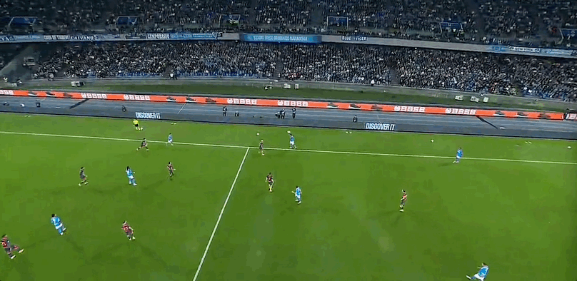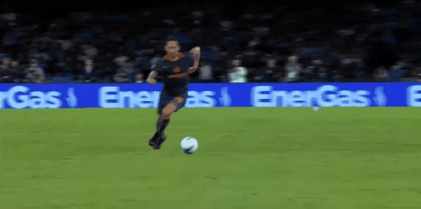 Biển cảnh báo 45+6' - Vi phạm Gilmour (Naples)