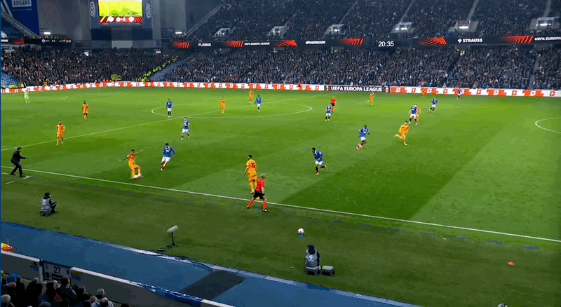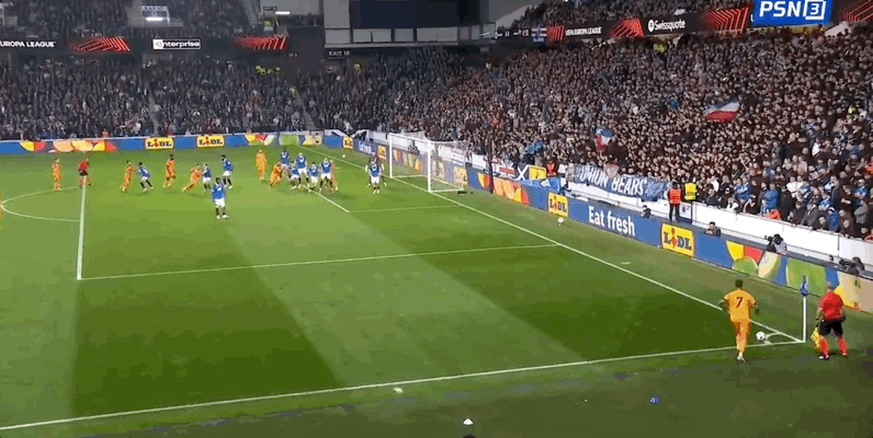 22’ Sule tung cú sút từ bên ngoài, và thủ môn Rangers đã cản phá được bóng từ vạch cuối sân