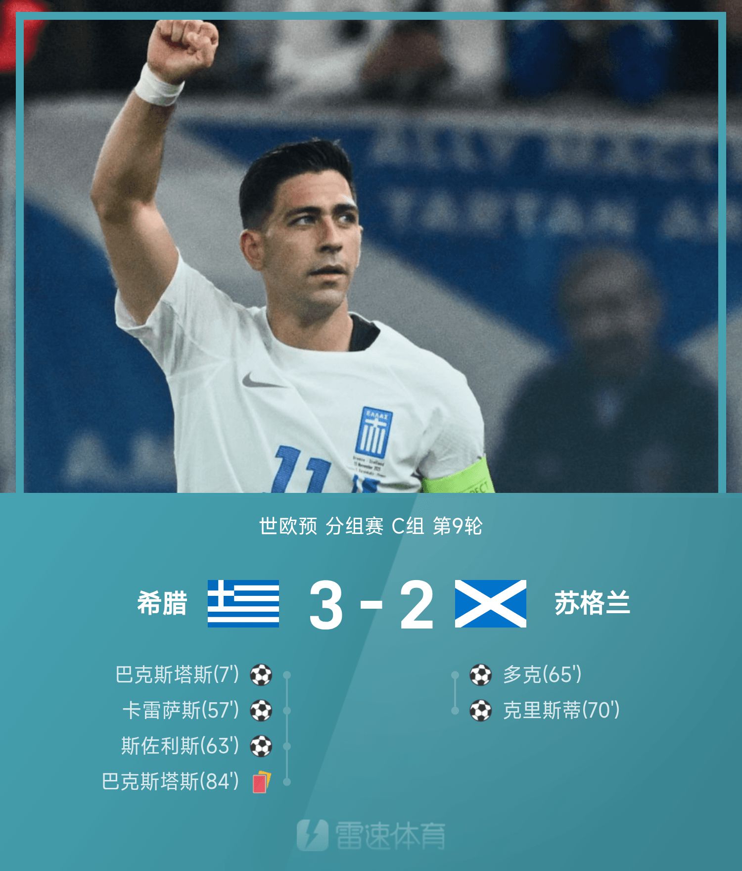 6686 Sports đưa tin ngày 16/11 rằng ở lượt 9 bảng C Vòng loại khu vực châu Âu thế giới lần thứ 26, Hy Lạp đã đánh bại Scotland với tỷ số 3-2. Xuyên suốt trận đấu, Baxtas đỏ mặt sau khi chuyền và sút, Szolis và Caresas ghi bàn và ghi bàn, Doak và Christie ghi hai bàn liên tiếp, còn Scotland bỏ lỡ cơ hội chuyền bóng.