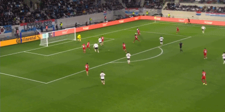 41' Wirtz cắt bóng vào trong khu vực ba giây sau cú vô lê một đối một và thủ môn đã bắt được bóng bằng cả hai tay