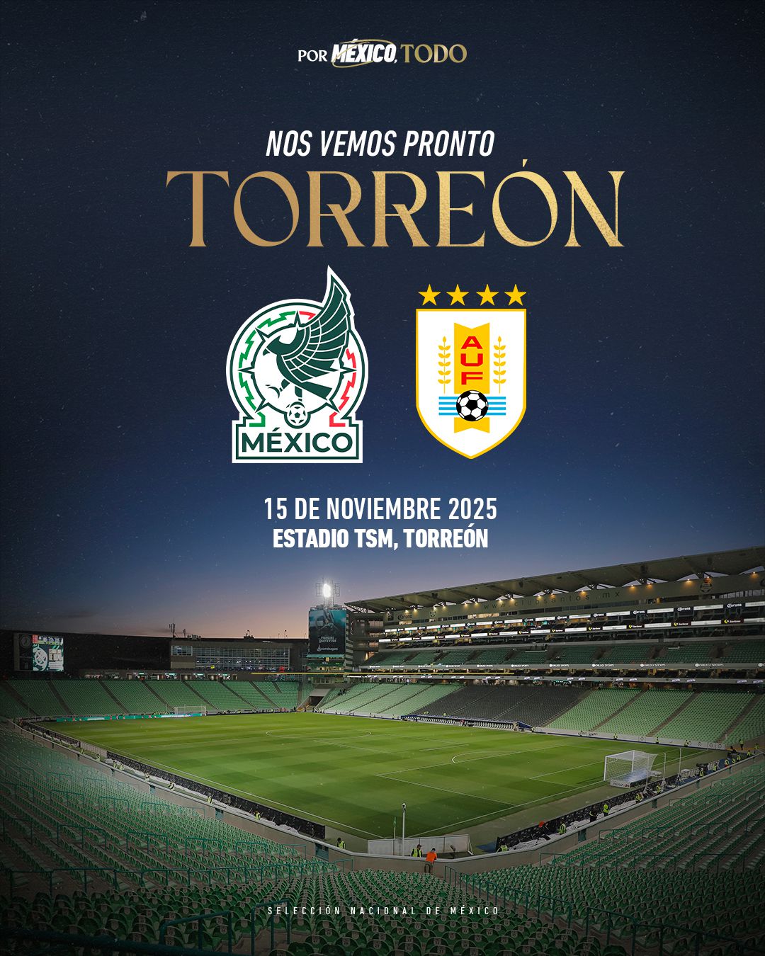 Lúc 9 giờ sáng ngày 16 tháng 11, giờ Bắc Kinh, trong một trận giao hữu bóng đá quốc tế, Mexico và Uruguay sẽ thi đấu tại Sân vận động Estadio TSM ở Torreon. Ba ngày sau, Mexico sẽ di chuyển đến San Antonio, Texas, Mỹ, nơi họ sẽ thi đấu với Paraguay, đối thủ cuối cùng trong năm. Uruguay sẽ thi đấu với Hoa Kỳ, một trong những nước chủ nhà của World Cup 2026, sau ba ngày nữa.