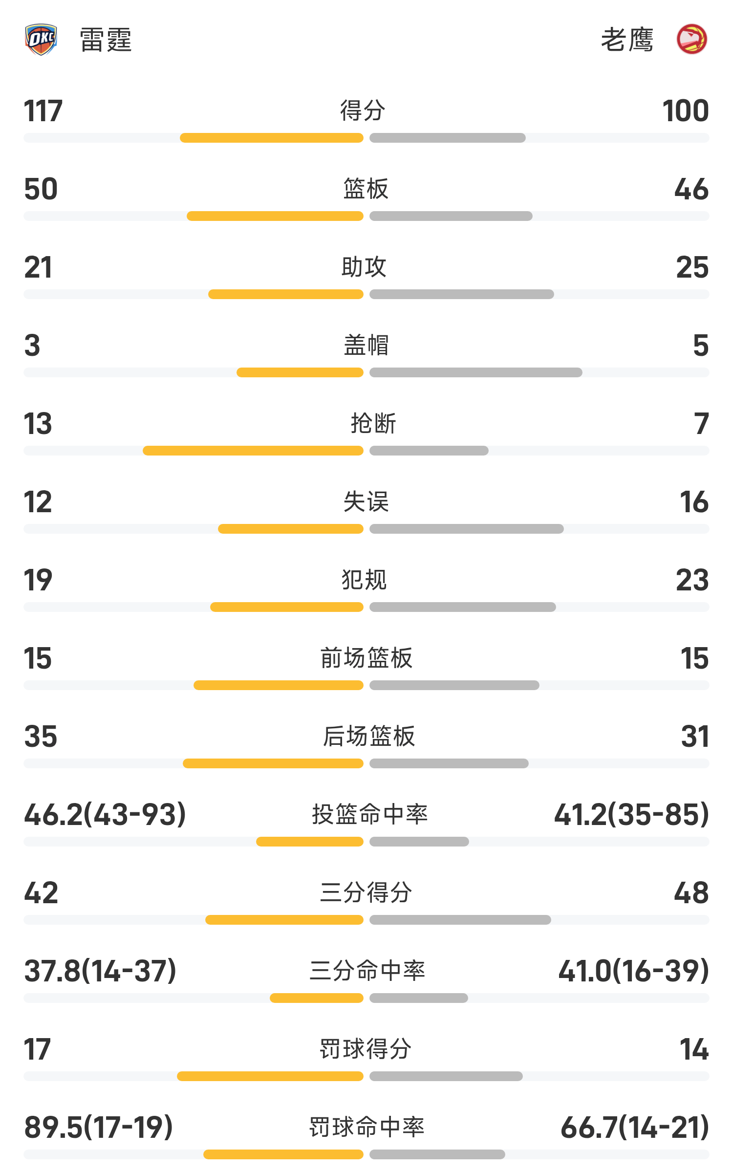 Cuối trận, Đại bàng thua Thunder với tỷ số 99-117.