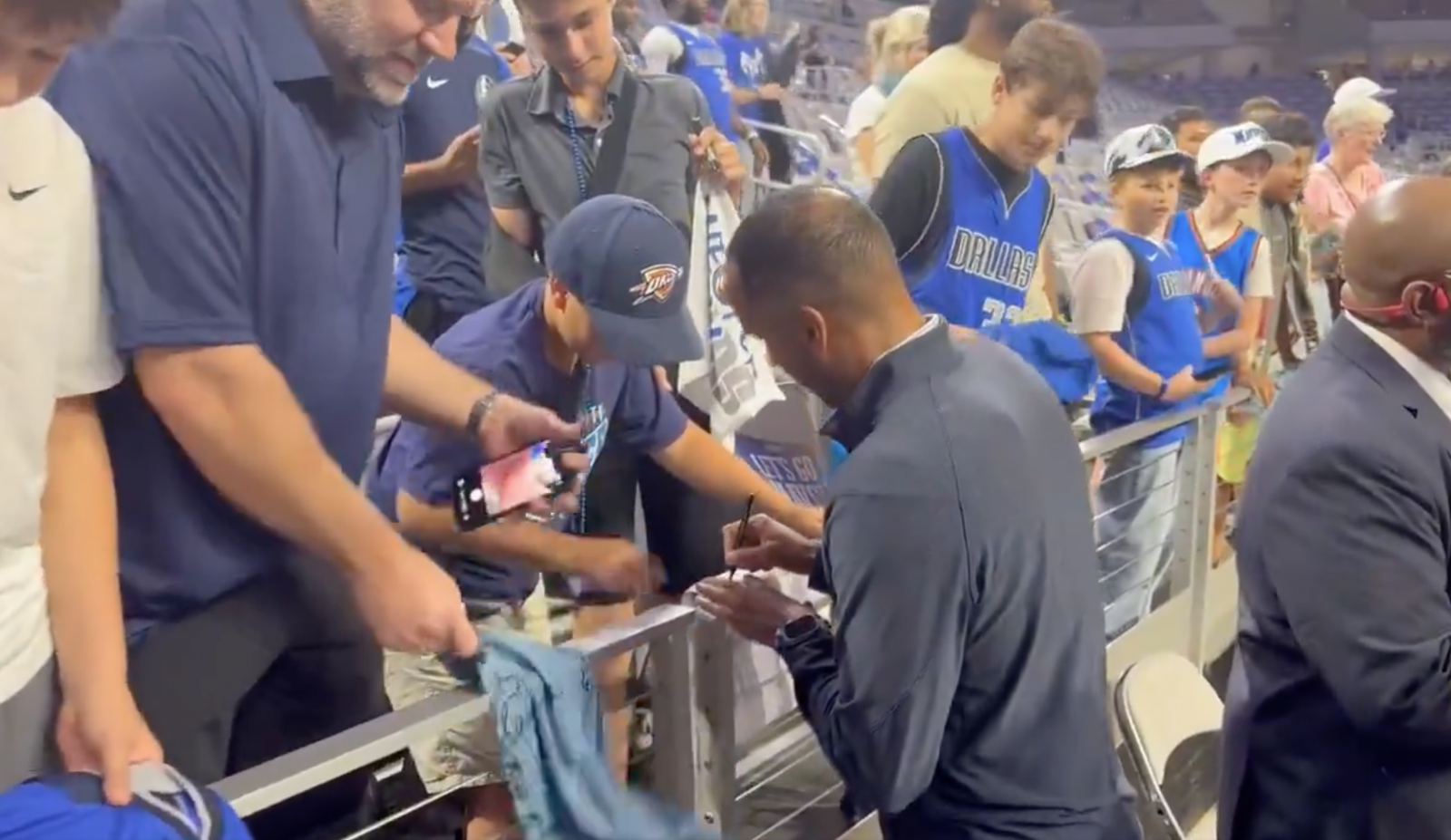 Trước trận đấu, tổng giám đốc Mavericks Nico Harrison đã đến bên lề, ký tặng và chụp ảnh cho người hâm mộ. Điều đáng nói, Harrison không chỉ ký tặng và chụp ảnh cho các fan Mavericks mà thậm chí còn ký tặng cho một fan trẻ tuổi của Thunder. Nhưng trong số những người hâm mộ, anh ta cố tình bỏ qua một người hâm mộ trẻ tuổi mặc đồng phục Doncic Mavericks, giả vờ như không nghe thấy yêu cầu của người này và lựa chọn trực tiếp rời đi.