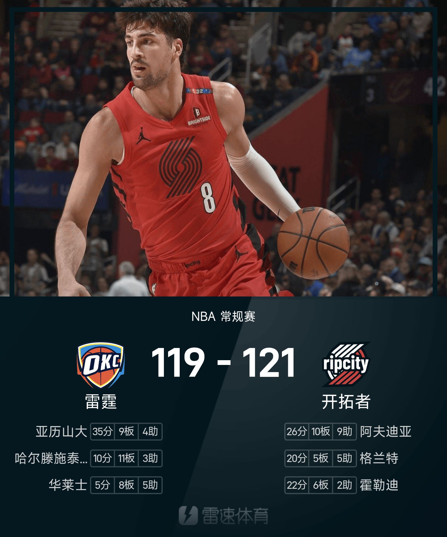 Báo cáo trận đấu NBA: Avdija 26 điểm, Yang Hansen không xuất hiện, Trail Blazers 121-119 Thunder