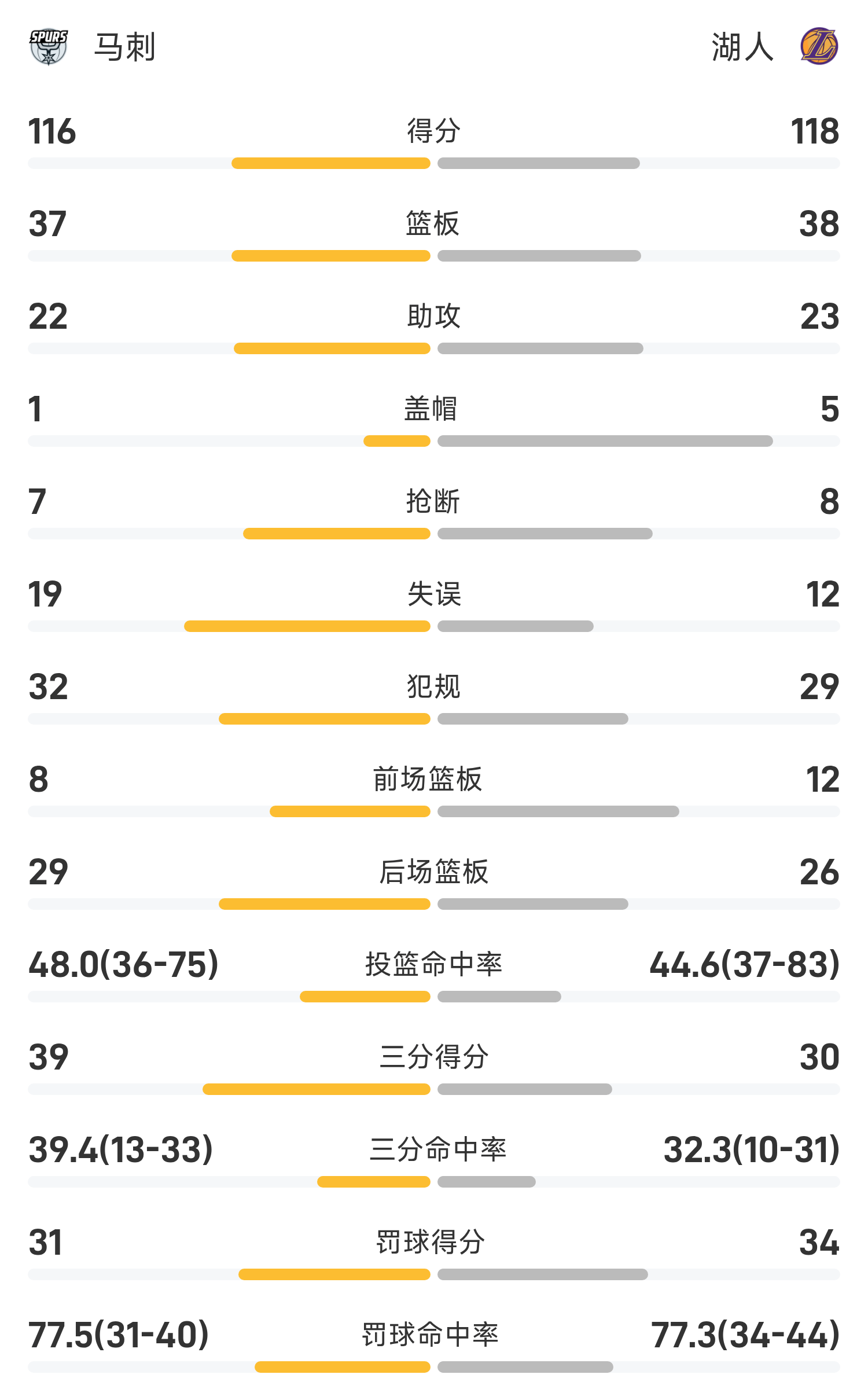 Cuối trận, Lakers đánh bại Spurs với tỷ số 118-116.