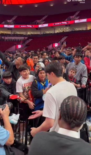 Mạng xã hội chính thức của NBA đã đăng tải một đoạn video cho thấy nhiều người hâm mộ đang chờ đợi Yang Hansen trong đường hầm trước trận đấu.