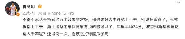 Tôi phải thừa nhận rằng 5 cầu thủ nhỏ của Blazers chơi rất hiệu quả. Nếu hiệu quả như vậy, bọn họ sẽ không thể tiến lên vị trí thứ năm. Chưa kể Yang Hansen, ngay cả Klingen cũng không thể thăng tiến! Những ông già như Warriors cũng đủ sức chống lưng cho họ. Curry ghi được 24 điểm trong hiệp một. Những kẻ như Podemski và Moody đang làm gì? Tôi phải nói lại lần nữa, tôi đau đầu khi xem Bojie thi đấu.