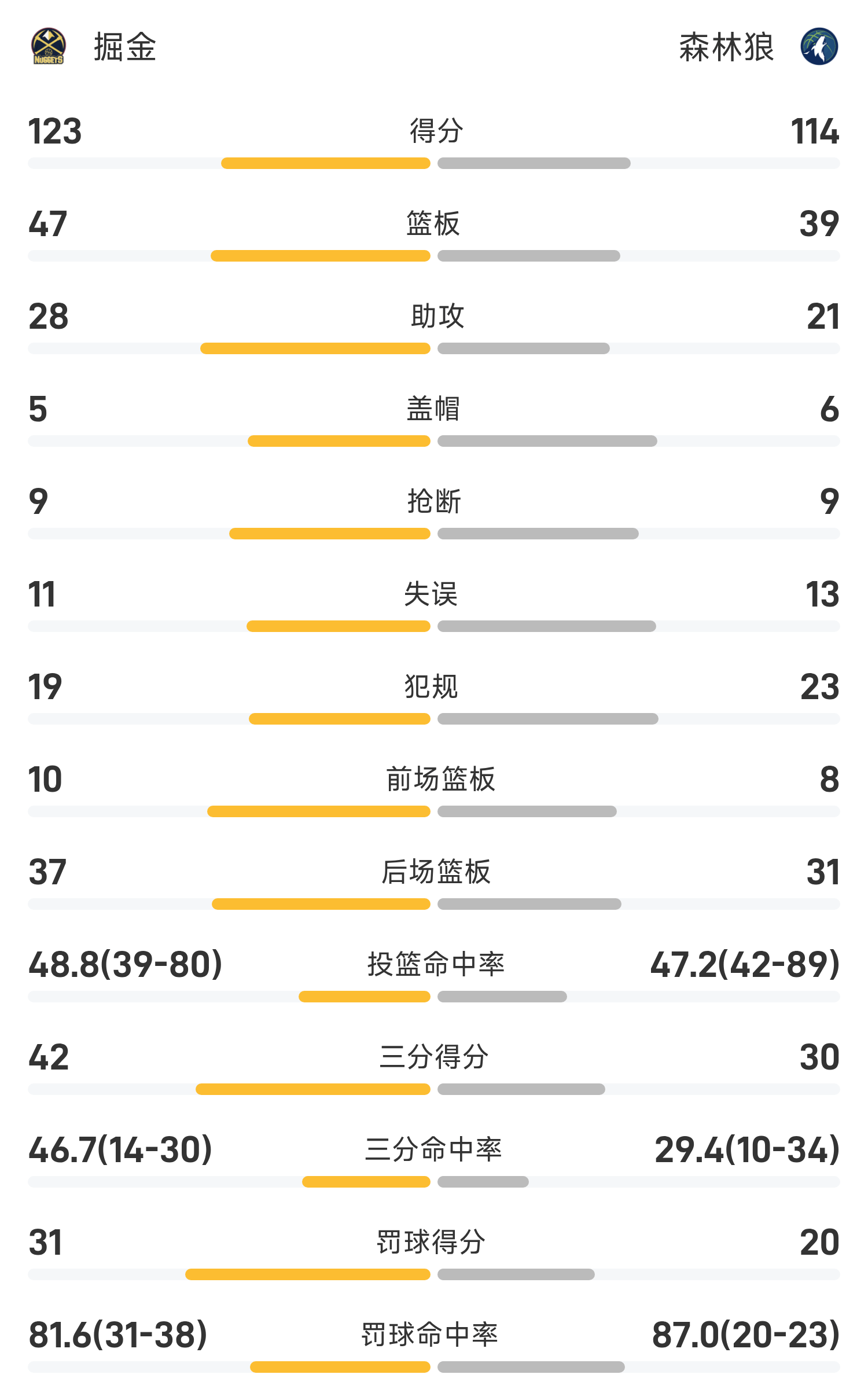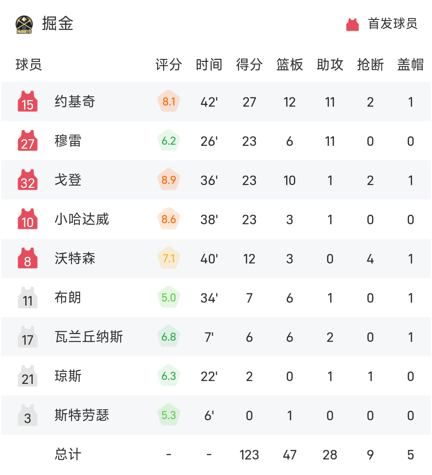 Báo cáo trận đấu NBA: Jokic có 27 điểm, 12 rebound và 11 kiến tạo, Nuggets đánh bại Timberwolves 123-112