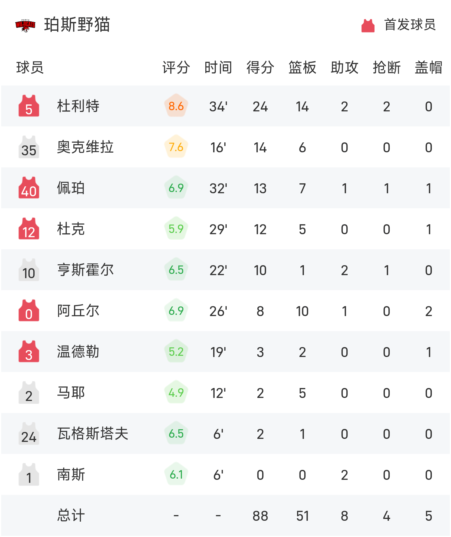 6686 Thể thao Tin tức ngày 15 tháng 11 Trong mùa giải NBL thường lệ ngày 26/25, Perth Wildcats đối mặt với New Zealand Destroyers. Kết thúc trò chơi, Perth Wildcats đã đánh bại Kẻ hủy diệt New Zealand với tỷ số 88-75. Doolittle đã ghi được 24 điểm cao nhất trận đấu, 14 rebound và 2 kiến tạo, đưa Perth Wildcats đến chiến thắng.