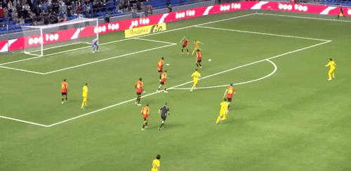 5' Trossard thực hiện một cú đá cố định, Samorodov phá bóng và bóng suýt rơi vào cửa nhà mình