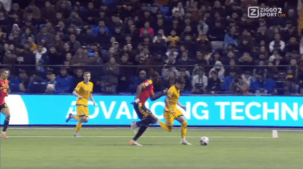 20' Van Naken xoay người dẫn bóng về phía khung thành, Anabekov dũng cảm cứu bóng