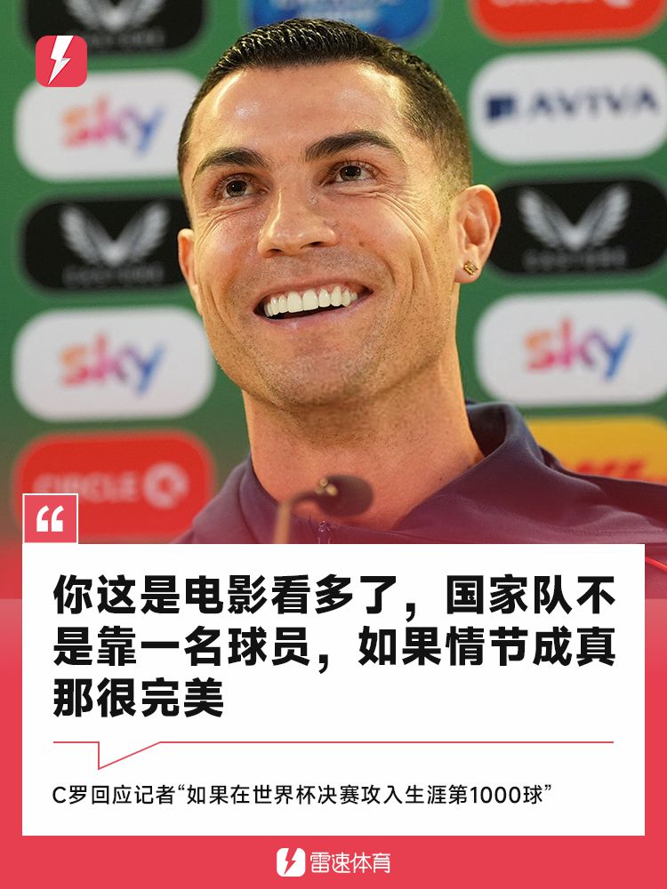"Nhưng những gì tôi đã nói là đúng ở một mức độ nào đó. chiến thắng là điều quan trọng đối với cả đất nước và đối với tất cả các cầu thủ của chúng tôi." Ronaldo nói: "Tôi nghĩ ông ấy muốn gây áp lực lên trọng tài. Ông ấy là một huấn luyện viên thông minh. Tôi đã chơi bóng nhiều năm và tôi hiểu các huấn luyện viên nghĩ gì cũng như cách họ làm việc chăm chỉ để giảm áp lực cho các cầu thủ. Tôi tin rằng chúng tôi sẽ chơi một trận đấu tuyệt vời và chúng tôi sẽ giành chiến thắng". rất mạnh về thể chất nhưng chúng ta sẽ xem điều gì xảy ra vào ngày mai nhưng tôi hy vọng Bồ Đào Nha sẽ thắng.” Nếu có thể ghi 1.000 bàn trong sự nghiệp ở các trận chung kết World Cup, Ronaldo thẳng thắn nói: "Các bạn đã xem quá nhiều phim rồi. Đội tuyển quốc gia không chỉ dựa vào một cầu thủ. Tất nhiên, việc ghi bàn luôn khiến tôi hạnh phúc. Tôi hy vọng được góp mặt ở World Cup tiếp theo. Nếu cốt truyện của bộ phim mà bạn nhắc đến có thể trở thành hiện thực thì sẽ rất hoàn hảo".